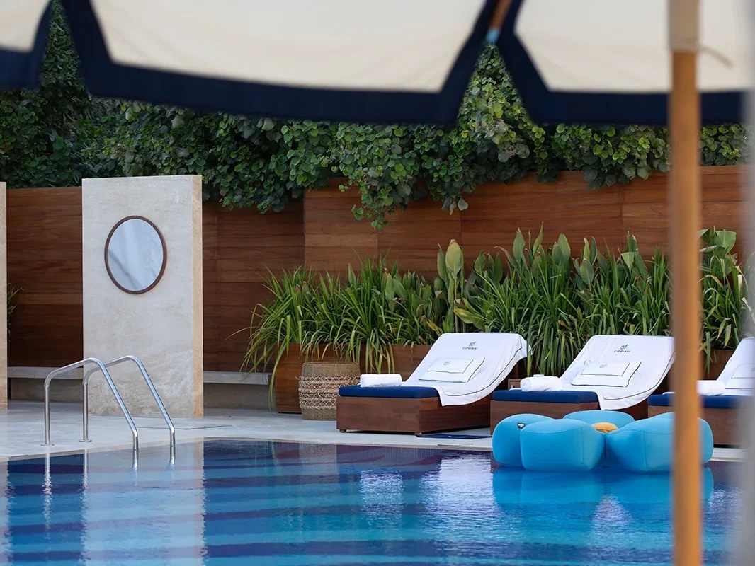 Cipriani Pool & Beach combines stylish sunbeds by the pool with private cabanas on the beach where the live entertainment, including a saxophonist, creates a vibrant yet relaxed ambience.