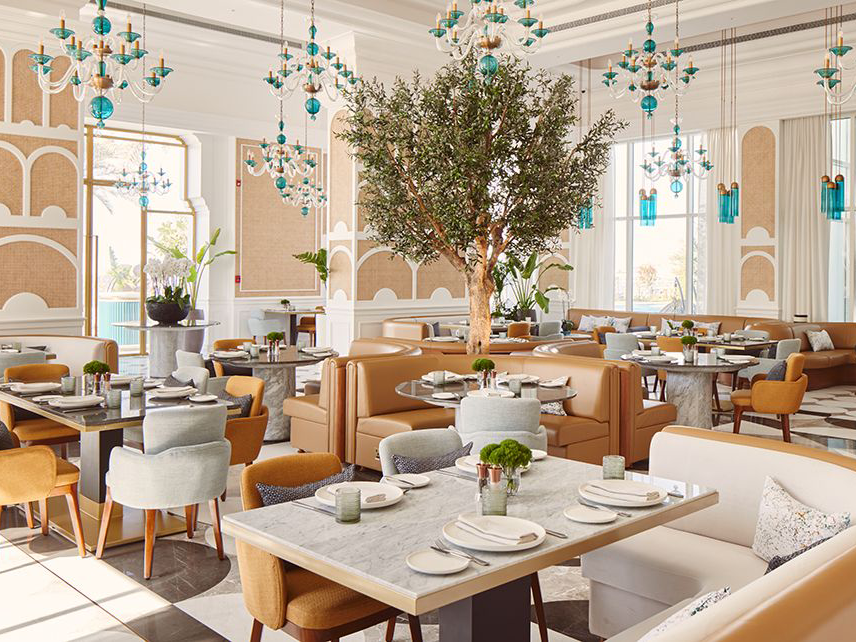 Palma, Raffles Al Areen Palace is an exquisite dining venue located within the opulent Raffles Al Areen Palace in Bahrain. This restaurant embodies luxury and sophistication, offering guests a refined culinary experience in an elegant setting. The decor is inspired by Mediterranean and Middle Eastern influences, featuring plush furnishings, intricate patterns, and a warm, inviting ambiance.